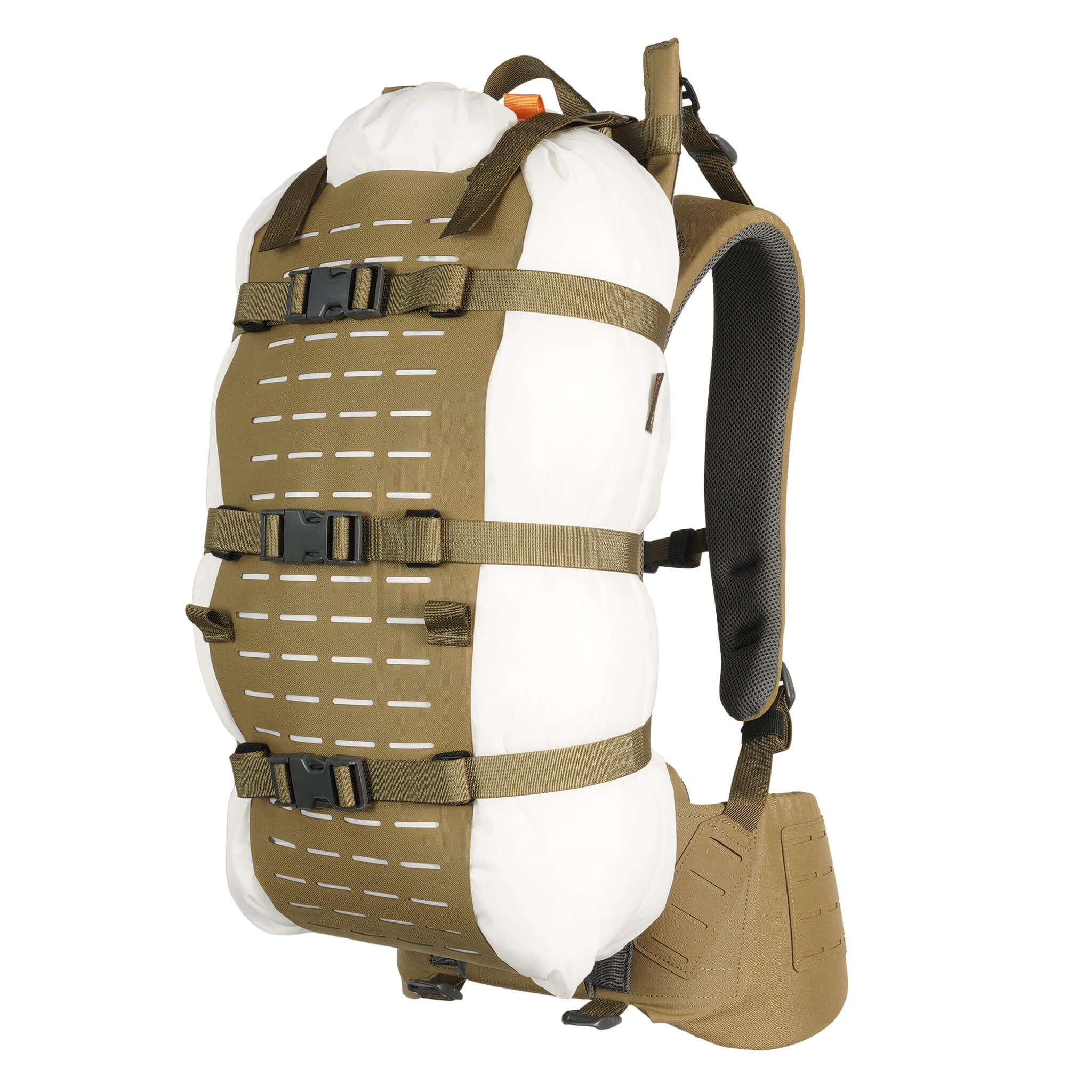 The laser-cut MOLLE offers attachment points for K4 Accessories, such as the K4 Hipbelt Pouch, and you can also attach a K4 Lid with the optional K4 Lid Straps.